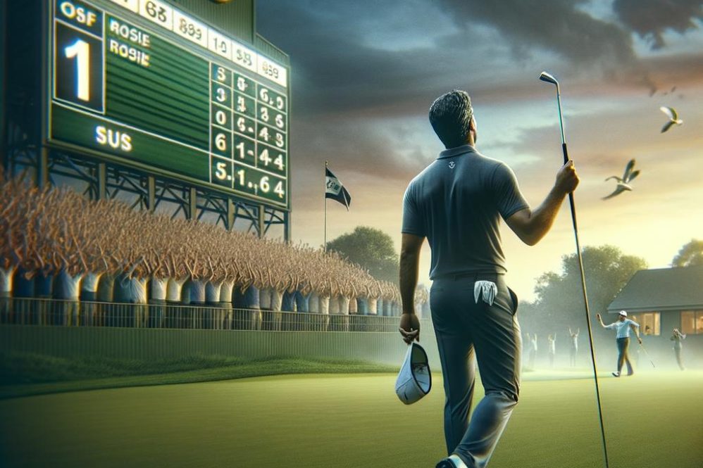 - Opening: snapshot of the leader’s score and the contenders within two shots.