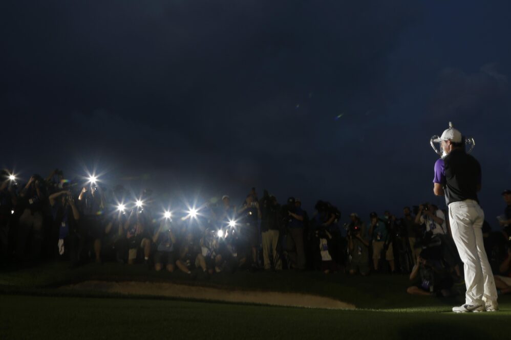 A decade ago, golf witnessed an unforgettable moment at the PGA Championship at Valhalla. Four of the game’s biggest stars – Rory McIlroy, Rickie Fowler, Phil Mickelson, and Yani Tseng – became entangled in a chaotic trophy presentation. As McIlroy prepared to receive the Wanamaker Trophy, Fowler playfully bumped into him, causing the trophy to topple over. A scramble ensued, with Mickelson and Tseng also attempting to catch the fallen trophy. The humorous incident captured the spotlight and remains a memorable moment in golf history. Ten years later, we revisit Valhalla to recount the events of that day and explore the lasting impact of the trophy fumble.